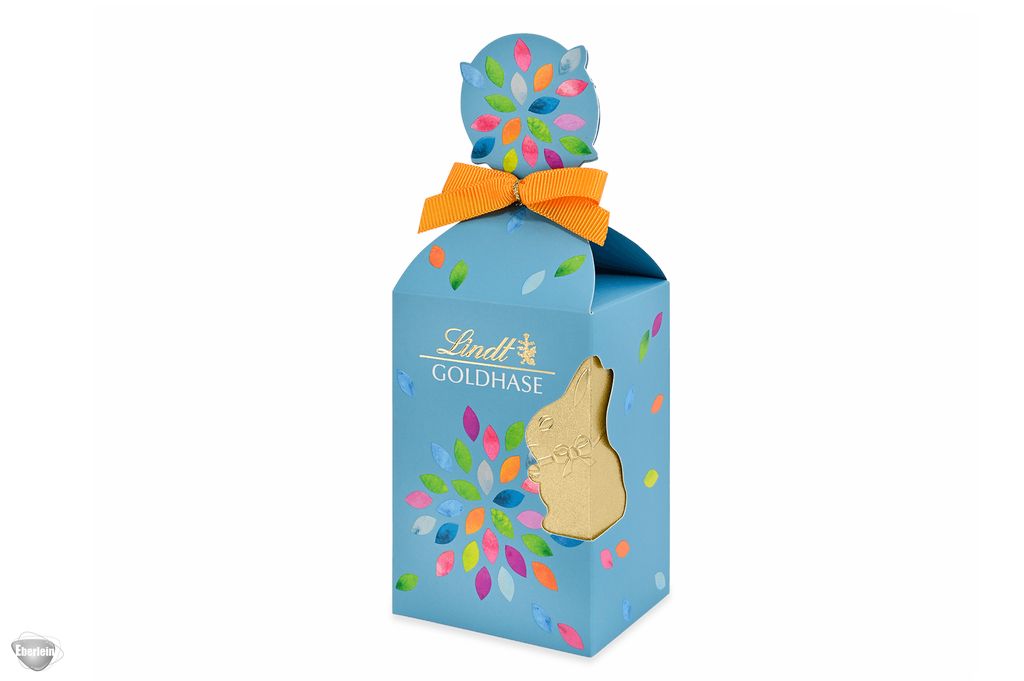 Die GOLDHASE Cut-Out Edition. Sichern Sie sich eine feine Mischung aus Mini GOLDHASEN, Nougat, Vollmilch- und Vanille Trüffel-Eiern im stilvoll gestalteten Köcher.