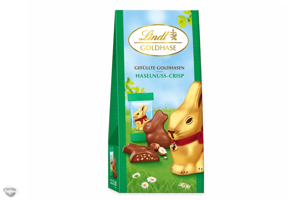 Die gefüllten Lindt GOLDHASEN Haselnuss-Crisp: feinste Lindt Vollmilch-Schokolade mit cremig-knusprigem Haselnusskern. Ideal als Osterüberraschung oder süße Aufmerksamkeit.