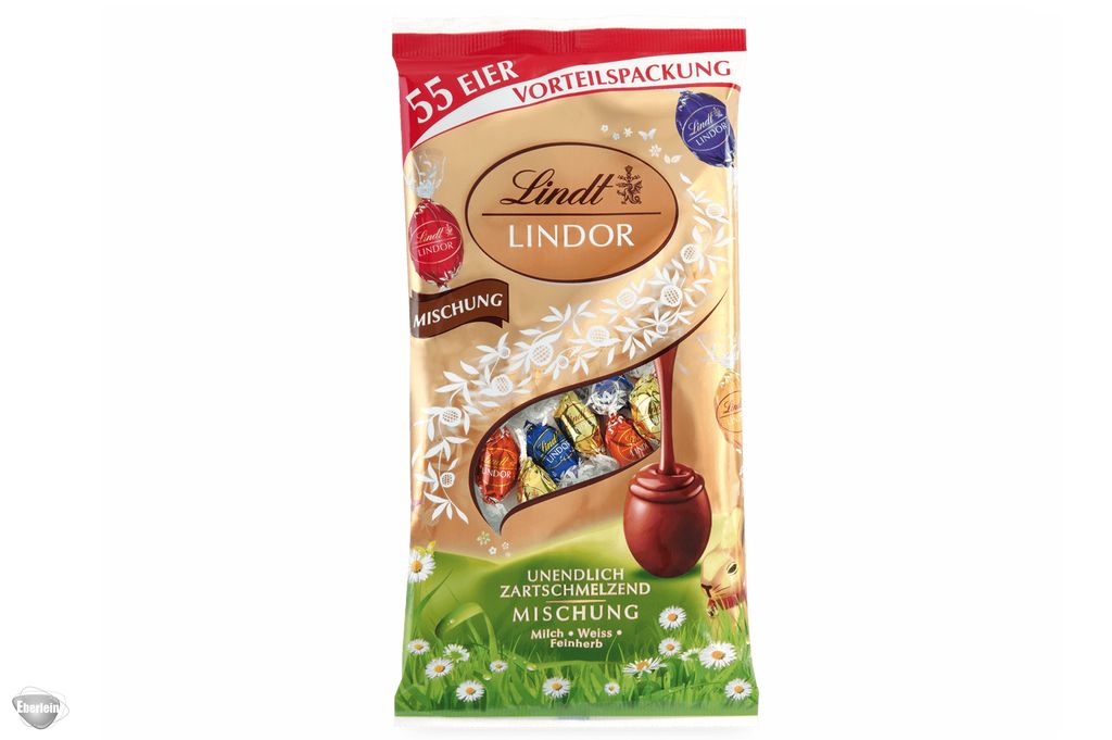 Ein bunter Mix der Lindor-Eier-Sorten Milch, Extra Dunkel, Weiß und Haselnuss.Wann immer, wo immer Sie LINDOR genießen – es ist ein magischer Moment. Wenn die feine Schokoladenhülle bricht, verführt die unendlich zartschmelzende Füllung Ihre Sinne und trägt Sie sanft davon – ein Moment puren Schokoladenglücks. Es ist Ihr Moment. Mit LINDOR – kreiert von den Lindt Maîtres Chocolatiers. Liebe und Leidenschaft für schocolade seit 1845.