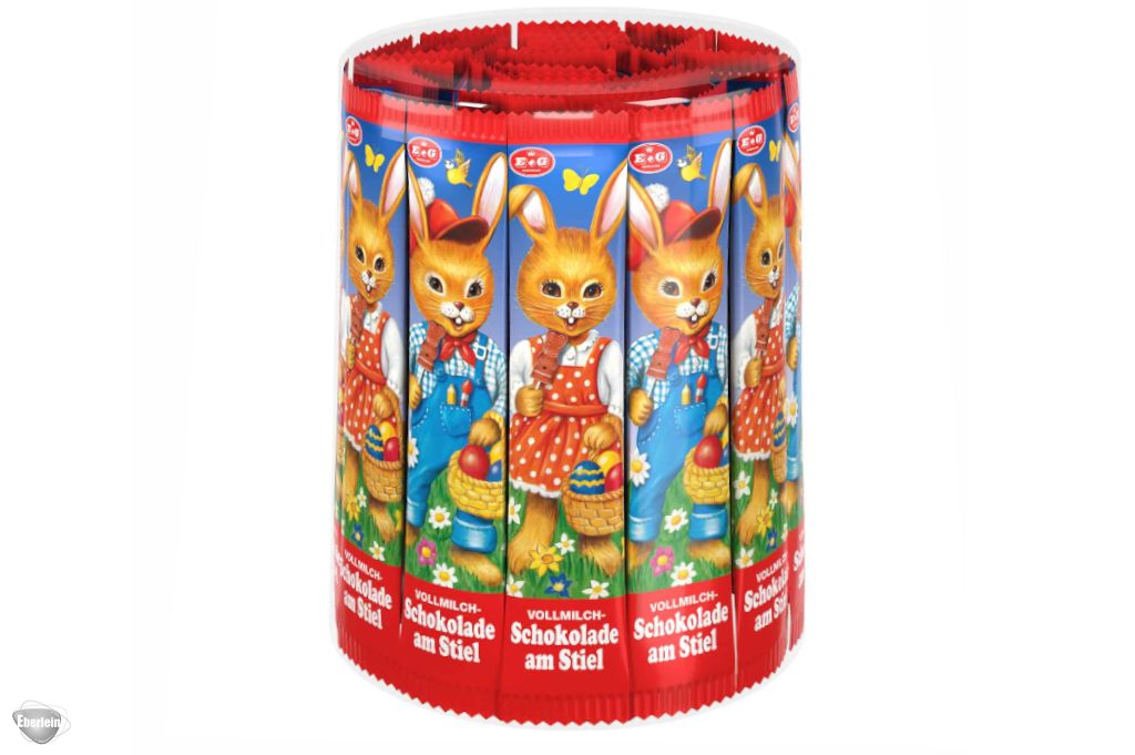 45 einzeln verpackten Lollis in Osterhasenform aus Vollmilch-Schokolade