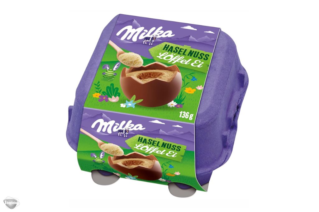 Mit dem Milka Löffel-Ei Haselnuss macht das Naschen besonders viel Spaß. In dem Eierkarton brüten vier Eier aus Alpenmilch-Schokolade vor sich hin und warten darauf, verschlungen zu werden. Gefüllt mit einer zarten Haselnuss-Creme überzeugen sie Schokoladenliebhaber. Im Karton sind außerdem zwei Löffel enthalten, mit denen das Vernaschen spielend einfach ist und Sie Löffel für Löffel genießen können.