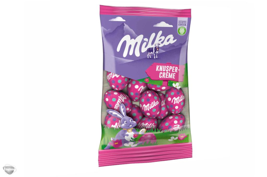 Milka Ostereier Knusper-Crème schmecken einfach gut. Kosten Sie die leckeren Mini-Eier aus zarter Alpenmilch-Schokolade und entdecken Sie die köstliche Füllung aus milder Milchcreme und krossen Getreide-Crispies. Die ca. 3 cm großen Leckerbissen eignen sich übrigens ideal zum Befüllen von Osternestern und garantiert für knusprigen Naschspaß.