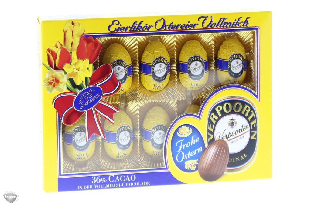 Die Verpoorten Eierlikör Ostereier Vollmilch sind eine echte Spezialität und werden nach einer alten Rezeptur zubereitet. In dieser wunderbaren Komposition umhüllt zarte Vollmilchschokolade den köstlichen Eierlikörkern und sorgt so für ein unvergleichliches Geschmackserlebnis. Machen Sie mit den Verpoorten Eierlikör Ostereiern Vollmilch Ihr Osterfest zu einem echten Genuss und verwöhnen Sie sich und Ihre Lieben.