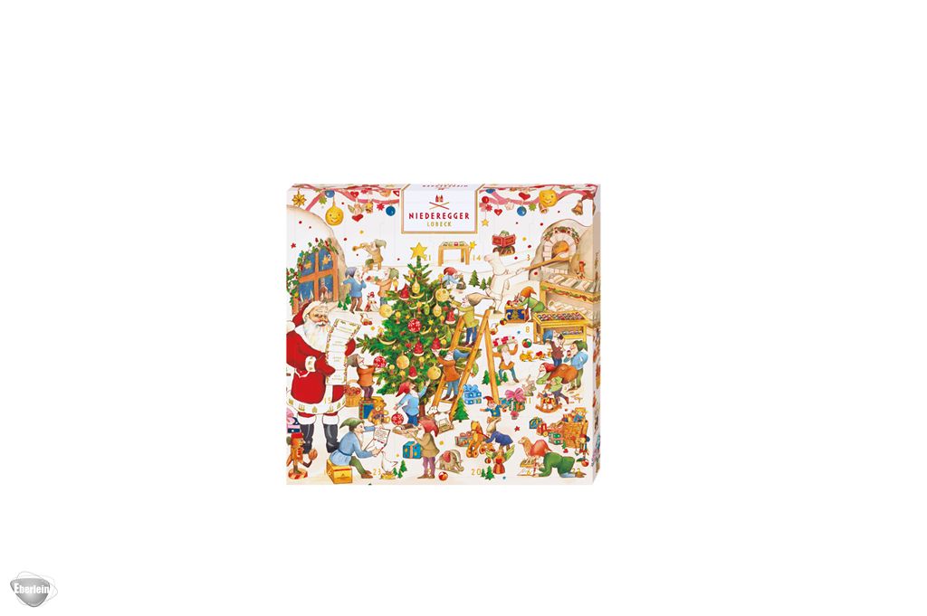 Der Niederegger Adventskalender "Mini-Wichtelwerkstatt" läutet die Weihnachtszeit ein und bringt Sie auf zweierlei Art in Festtagsstimmung. Der hübsche Kalender überzeugt mit seiner schicken Optik und bringt Ihnen in 24 Türchen einen erlesenen Genuss nach Hause. Köstliche Marzipan-Pralinen werden von einem Überzug aus feiner Zartbitterschokolade ergänzt und entfalten gekonnt Ihr Aroma. Durch den praktischen Standfuß lässt sich der ca. 19,5×19 cm große Adventskalender ganz einfach aufstellen und wird endgültig zum optischen Höhepunkt.