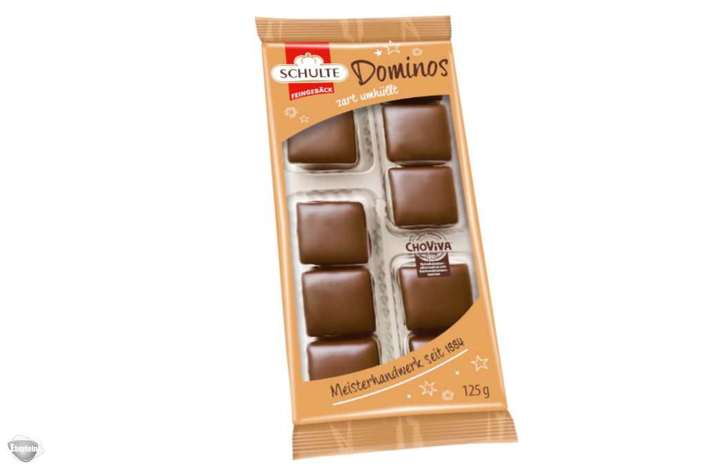 Die ChoViva Dominosteine Hell von Schulte bieten eine zarte Kombination aus klassischem Lebkuchen, fruchtigem Kern und Persipan, umhüllt von cremiger heller Schokoladenalternative mit veredeltem Sonnenblumen-Knusper – eine helle Interpretation des beliebten Lebkuchenkonfekts für besondere Genussmomente.