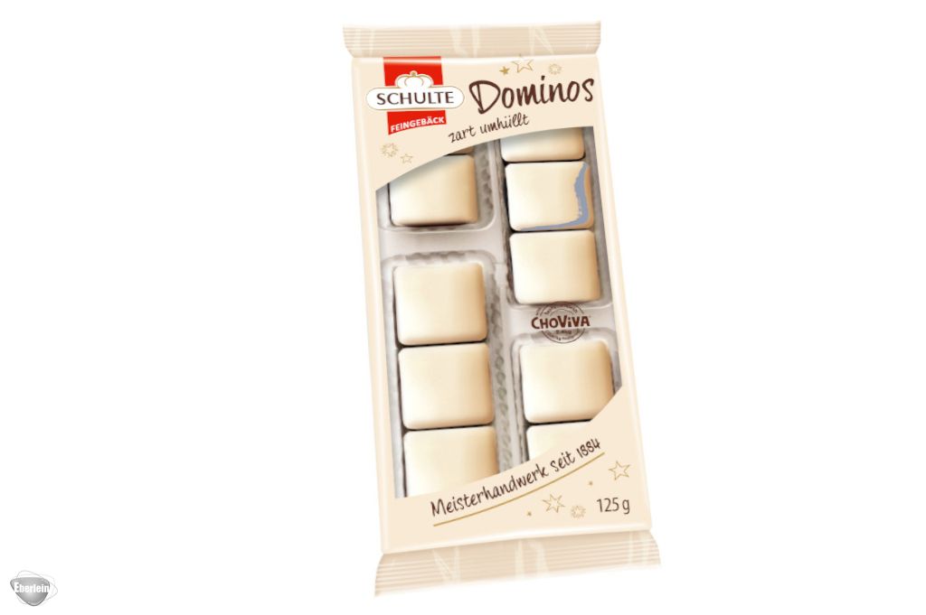 Die ChoViva Dominosteine Weiß von Schulte vereinen klassisches Lebkuchenhandwerk mit moderner Interpretation: Sie bestehen aus würzigem Lebkuchen, einer fruchtigen Füllung und nussigem Persipan, umhüllt von einer hellen, kakaobutterfreien Schokoladenalternative – für besonders milden Weihnachtsgenuss.