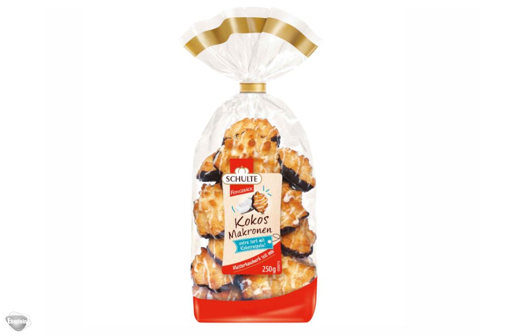 Schulte Kokos-Makronen schmecken perfekt zum Tee oder Kaffee. Das lecker Gebäck ist angenehm knusprig und überzeugt mit einem Boden aus feiner Zartbitterschokolade, die ihr volles Aroma entfaltet. Beißen Sie hinein und erleben Sie den milden Geschmack köstlicher Kokosnuss und entdecken Sie das Dekor aus weißer Schokolade.