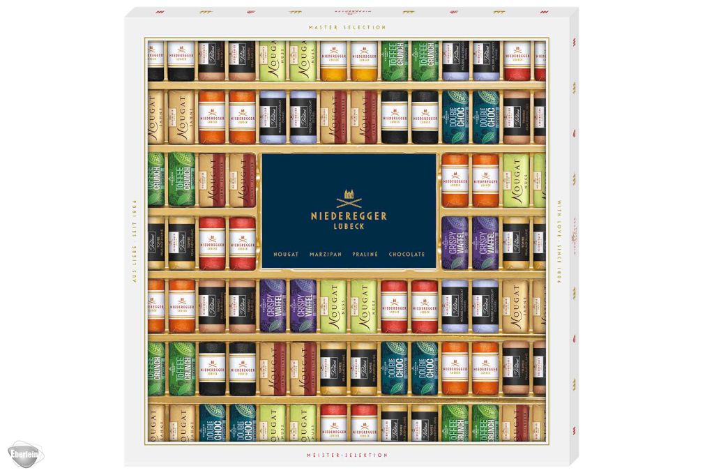 Lassen Sie sich meisterhaft verführen. Mit der Niederegger Meister-Selektion erhalten Sie eine mannigfaltige Zusammenstellung aus dem zartesten Nougat, dem leckersten Marzipan mit Überzug aus Zartbitterschokolade und sanften Trüffeln. Für Fans der besonderen Leckereien ist diese Mischung ein besonderes Geschenkerlebnis - natürlich eignet sie sich auch hervorragend zum Selbstvernaschen.