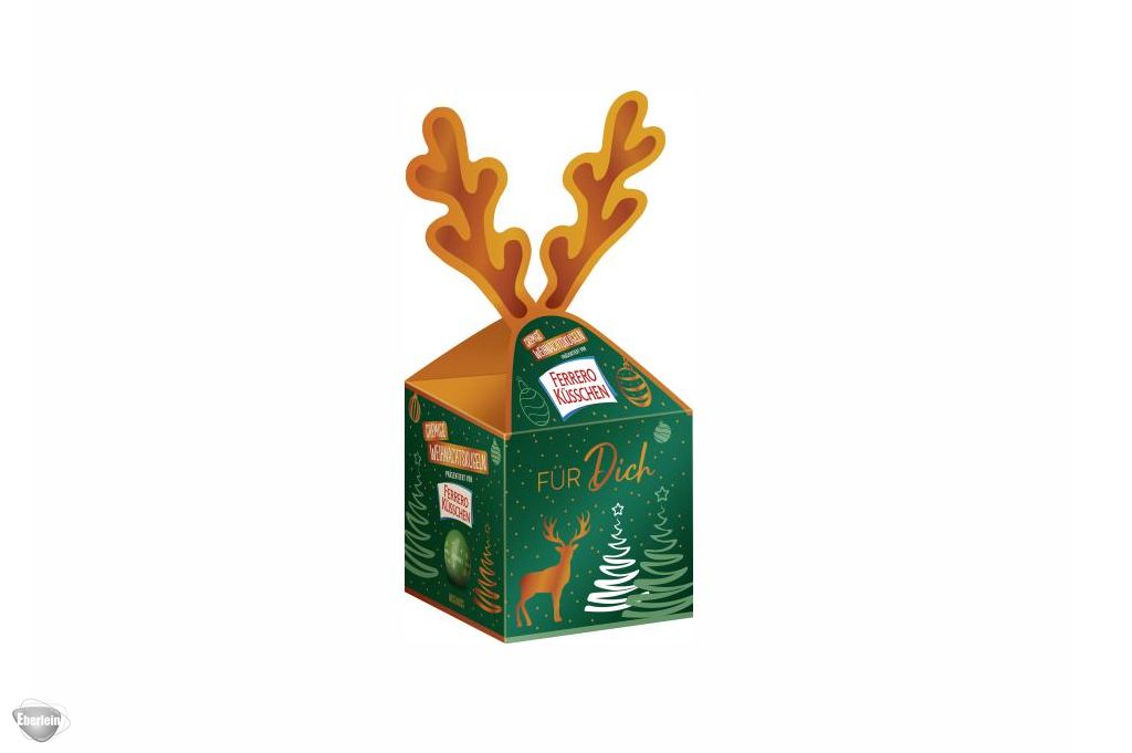 Charmant und köstlich - die Ferrero Küsschen Rentierpackung bringt festliche Stimmung und nussigen Genuss zusammen. Mit ihrer liebevollen Rentier-Gestaltung und den beliebten Pralinen ist sie das perfekte Mitbringsel für die Weihnachtszeit.