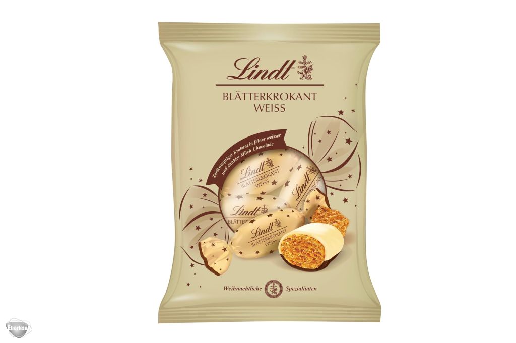 Ein Wintertraum in Zapfenform: Der Lindt Blätterkrokant Zapfen in weißer Schokolade vereint zarte Süße mit knusprigem Krokant und sorgt für doppelte Genussmomente dank der praktischen Doppeldreh-Verpackung. Ideal zum Teilen - oder zum ganz allein Genießen unter dem Weihnachtsbaum.