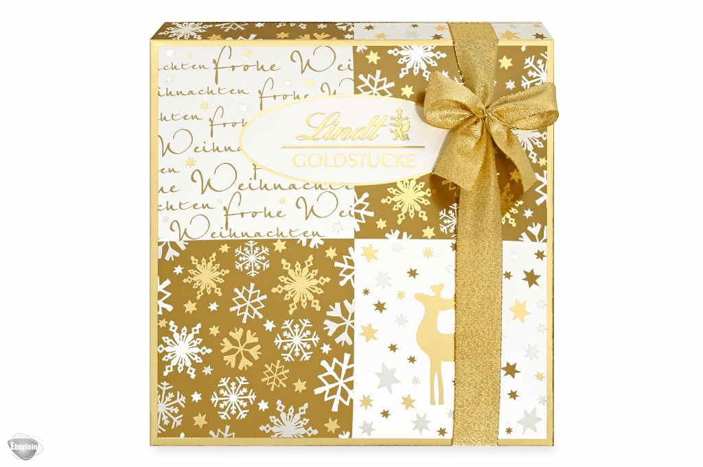Wenn zu Weihnachten Gold und Weiß zusammentreffen, entsteht ein Hauch von Luxus. Die Maîtres Chocolatiers von Lindt haben mit viel Liebe zum Detail hochwertige Geschenke kreiert und sorgen mit den „Goldstücken“ für eine festliche Weihnachts-Stimmung. Diese hochwertige Packung ist gefüllt mit einer exklusiven Mischung feinster Lindt Pralinés.