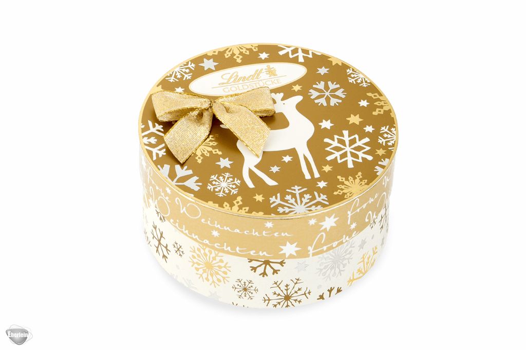 Wenn zu Weihnachten Gold und Weiß zusammentreffen, entsteht ein Hauch von Luxus. Die Maîtres Chocolatiers von Lindt haben mit viel Liebe zum Detail hochwertige Geschenke kreiert und sorgen mit den „Goldstücken“ für eine festliche Weihnachts-Stimmung. Die edle Runddose ist gefüllt mit einer exklusiven Mischung feiner Lindt Schokolade Kugeln in den 3 weihnachtlichen Rezepturen: Bratapfel, Walnuss und Zimt & Koriander.