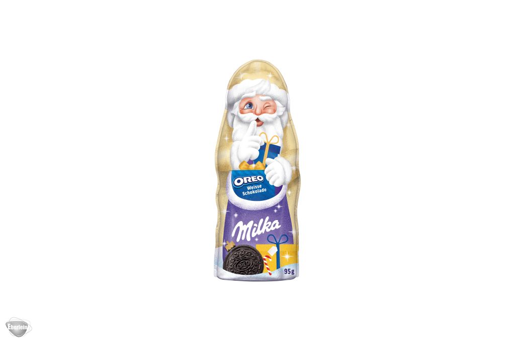 Für coole Weihnachtsstimmung sorgt der neue Milka Weihnachtsmann Oreo White 95g aus zarter weißer Milka Schokolade und mit Oreo Keksstückchen. Sein helles Outfit sorgt für stimmungsvolle Abwechslung bei der Schokoladendekoration auf dem Weihnachtstisch.