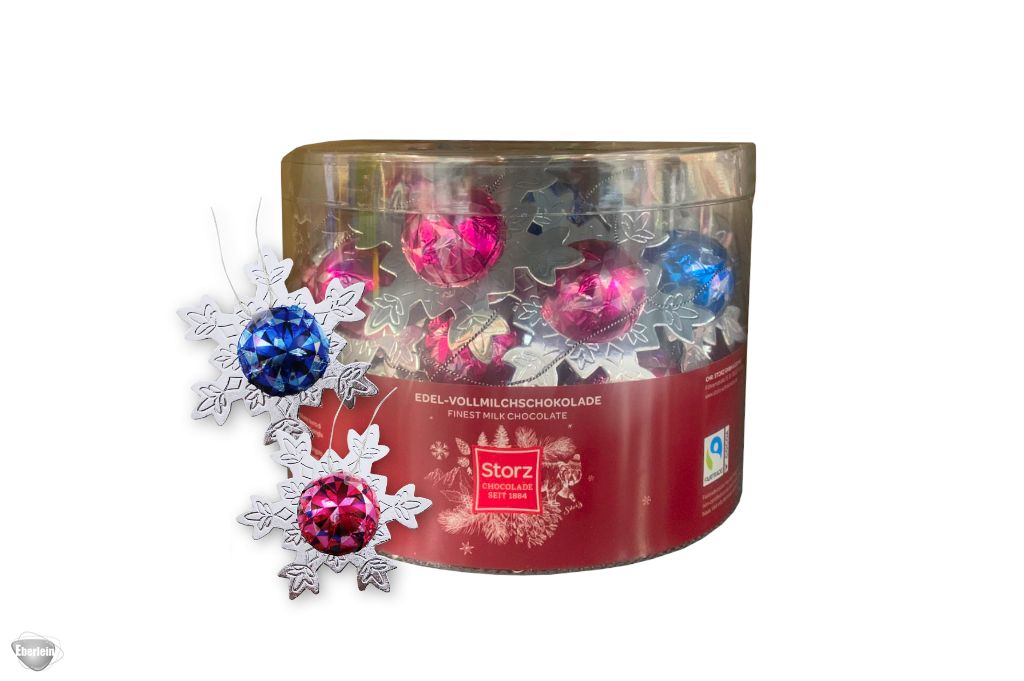 Der Eiskristall ist der Inbegriff winterlicher Schokoladengenüsse. Hergestellt aus feinster Edelvollmilch-Schokolade mit Fairtrade-Kakao, verzaubert er durch seinen zarten Schmelz und die kunstvoll gestalteten Details, die ihn wie einen echten Eiskristall erstrahlen lassen. Perfekt als festlicher Hingucker auf der Weihnachtstafel oder als kleines Highlight für zwischendurch - dieser Eiskristall bringt winterlichen Glanz und puren Genuss in jede Weihnachtszeit. Ein zauberhaftes Erlebnis für Groß und Klein!