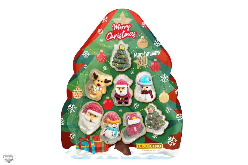 8 detailreiche 3D-Marshmallow-Figuren im festlichen Weihnachtslook
