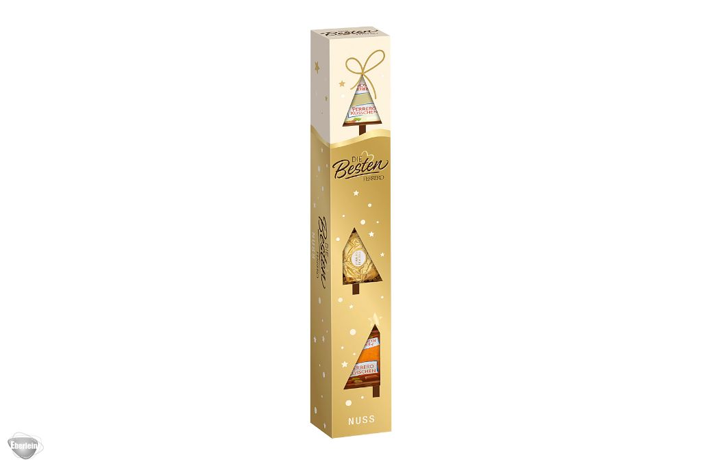 Als kleines Geschenk zu Weihnachten oder als genussreiche Aufmerksamkeit: Zweierlei Ferrero Küsschen, gepaart mit Ferrero Rocher - darüber freut sich jeder! Mit Die Besten von Ferrero haben Sie dreimal Premium-Genuss in einer Packung. Ferrero Rocher ist das unwiderstehlich zarte Genusserlebnis mit zarter Milchschokolade, knuspriger Waffel, feiner Haselnusscreme, knackigen Haselnussstückchen und einer ganzen Haselnuss in der Mitte. Ferrero Küsschen ist die beliebte Nuss-Spezialität mit einer knackig gerösteten Haselnuss, umhüllt von feiner Schokolade: in der Klassik Variante und in der White Crispy Variante.