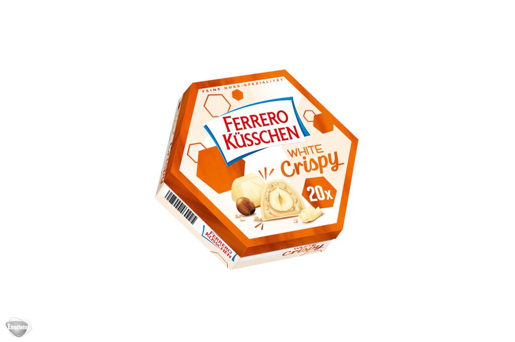 Eine knackig geröstete Haselnuss in einer hellen Creme mit knusprigen Crispies, umhüllt von feiner weißer Schokolade - das ist Ferrero Küsschen White Crispy. Ferrero Küsschen ist perfekt zum Teilen und Genießen mit Freunden - denn guten Freunden gibt man ein Küsschen.