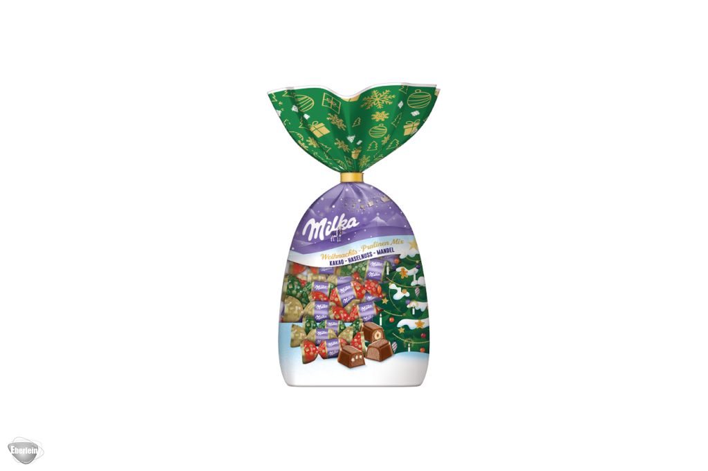 Zu Weihnachten gibt es einzeln verpackte Milka Weihnachts-Pralinen in den Geschmacksrichtungen Mandel, Haselnuss und Kakao. Sie sind perfekt zum Naschen und Teilen oder als Mitbringsel geeignet.