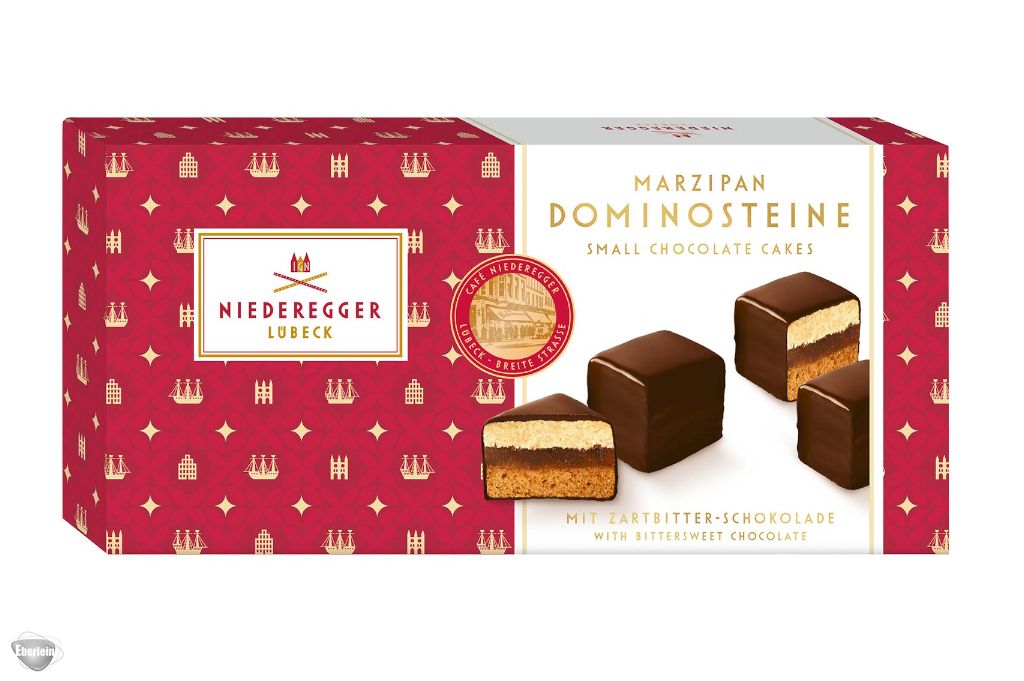 Marzipan steht bei Genießern sehr hoch in der Gunst. Niederegger Marzipan Dominosteine sind mit Zartbitterschokolade veredelt und sorgen mit einer Füllung aus Lebkuchen, Frucht-Gelee und saftigem Marzipan für einen vollendeten Genuss, der Ihre Sinne verführen wird.